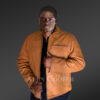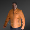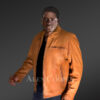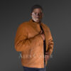 Authentic lamb leather renders a superior grade to this stylish men’s jacket. Italian aniline leather finish provides a glossy glow and smoothened texture to this attire. Its leather body carries a dashing orangish tan shade in a single tone. The uniform color radiates a dashing look to the wearer with a refined fashion taste. Besides its visual delight, this feather-light jacket is an absolute snug wear. The luxuriant satin lining keeps the inside of the jacket in utmost thermal comfort. The silky smoothness of the satin liner feels pleasant on the skin.