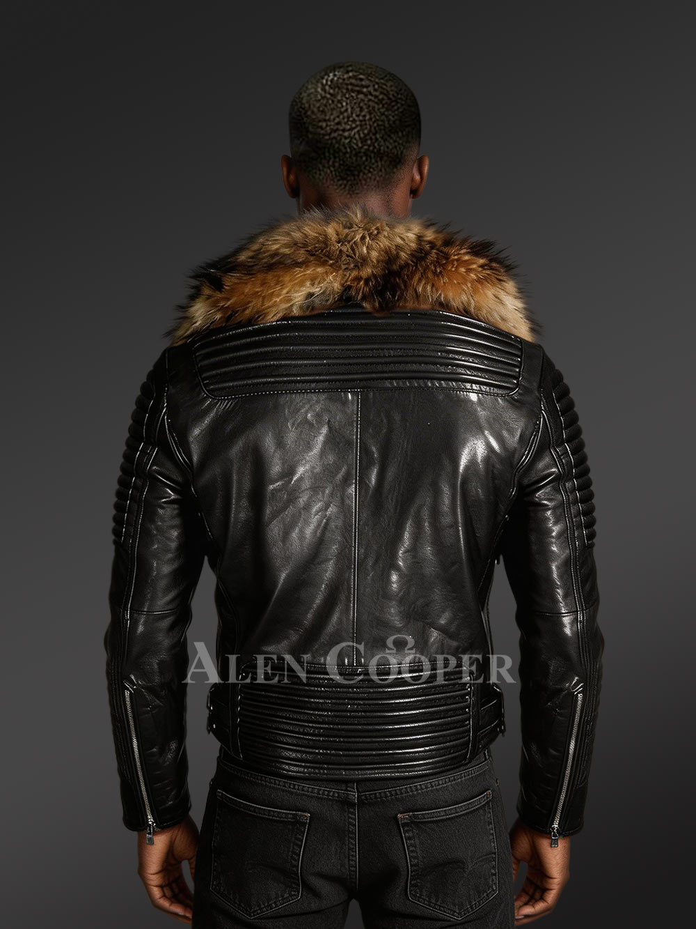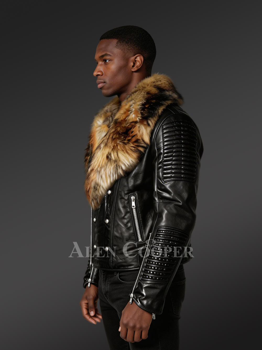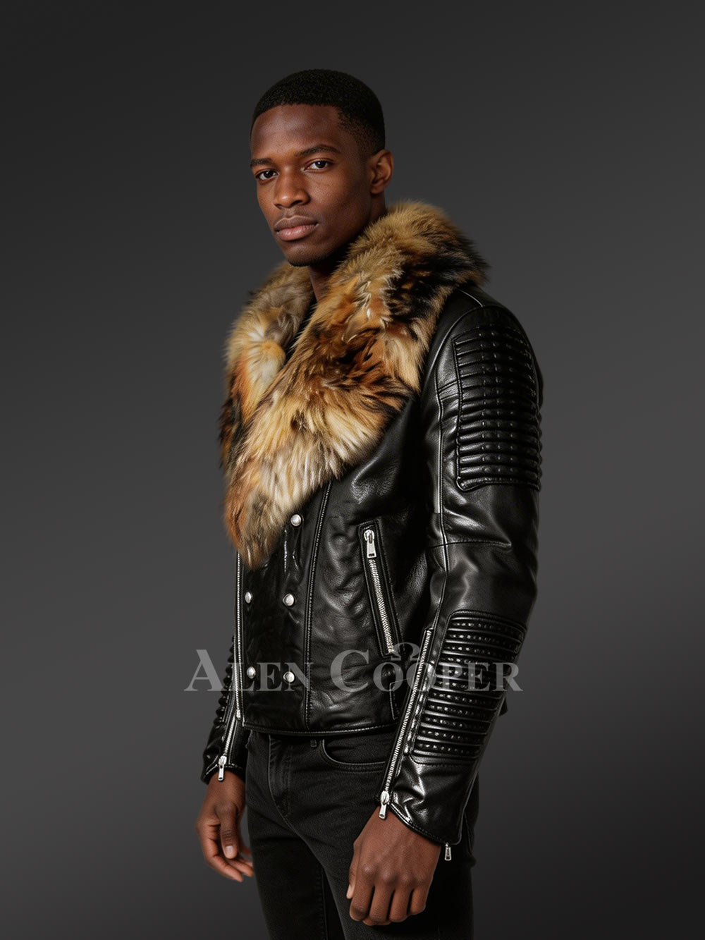 Ruling the fashion industry for a long time, leather jackets accentuated with authentic fur can never go in vain. The outerwear range introduced by Alen Cooper’s winter garments are very popular among men. This biker leather fur jacket features Italian finish on pure lamb leather. Also, the lustrous leather fur jacket holds a classy looking fur collar. Undeniably, natural fur stemming its original allure can never go out of fashion. In similar fashion, this outerwear holds pelts of raccoon fur which shapes the shawl style collar. However, the fur on the jacket is detachable thus covering up the elite regular turn down collar and notched lapel.