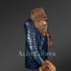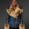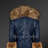 This elegant leather moto jacket for women displays a strikingly innovative design in the composite form of authentic leather and natural fur. This winter attire highlights a delicate taste and rich choice in matters related to women’s fashion. It provides warmth on severe winter days while on a ride. Alen Cooper has considered all the relevant aspects in conscientiously handcrafting this stunning outerwear to help one stand out in any party crowd or casual event. Its captivating navy blue color leather body and furry composition radiate unparalleled style and confidence.
