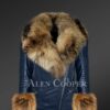 - Wide fluffy detachable raccoon fur collar and cuffs with dense lustrous guard hair.