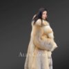 As can be seen, this elegant winterwear radiates with the original shades of golden fox fur. The grayish black and white shades undoubtedly enhance the coat’s aesthetic appeal by breaking the monotone of the golden shade. The paragraph style frontline covers the entire length and surely adds to the beauty of this winter wear.