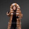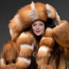 The Red Fox Fur Tuxedo coat acts as a catalyst for a spectacular transformation. This fur coat reflects dual tone. The highlighting aspect of the tuxedo coat is the wide hood, collar and lapel section. The concept of wide to narrow is well detailed with white and reddish-brown fox fur pelts. Having an elegant lining, the wide hood has a detailed paragraph box-style design. The interior of the coat has also been made from full skin fox fur. This keeps the head of the wearer warm and comfortable.Â