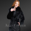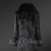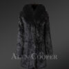 Long Rabbit Coat in Black with Shawl Style Collar of Fox Fur