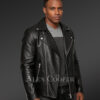 Black Suede Finish Biker Shearling Jacket For Men