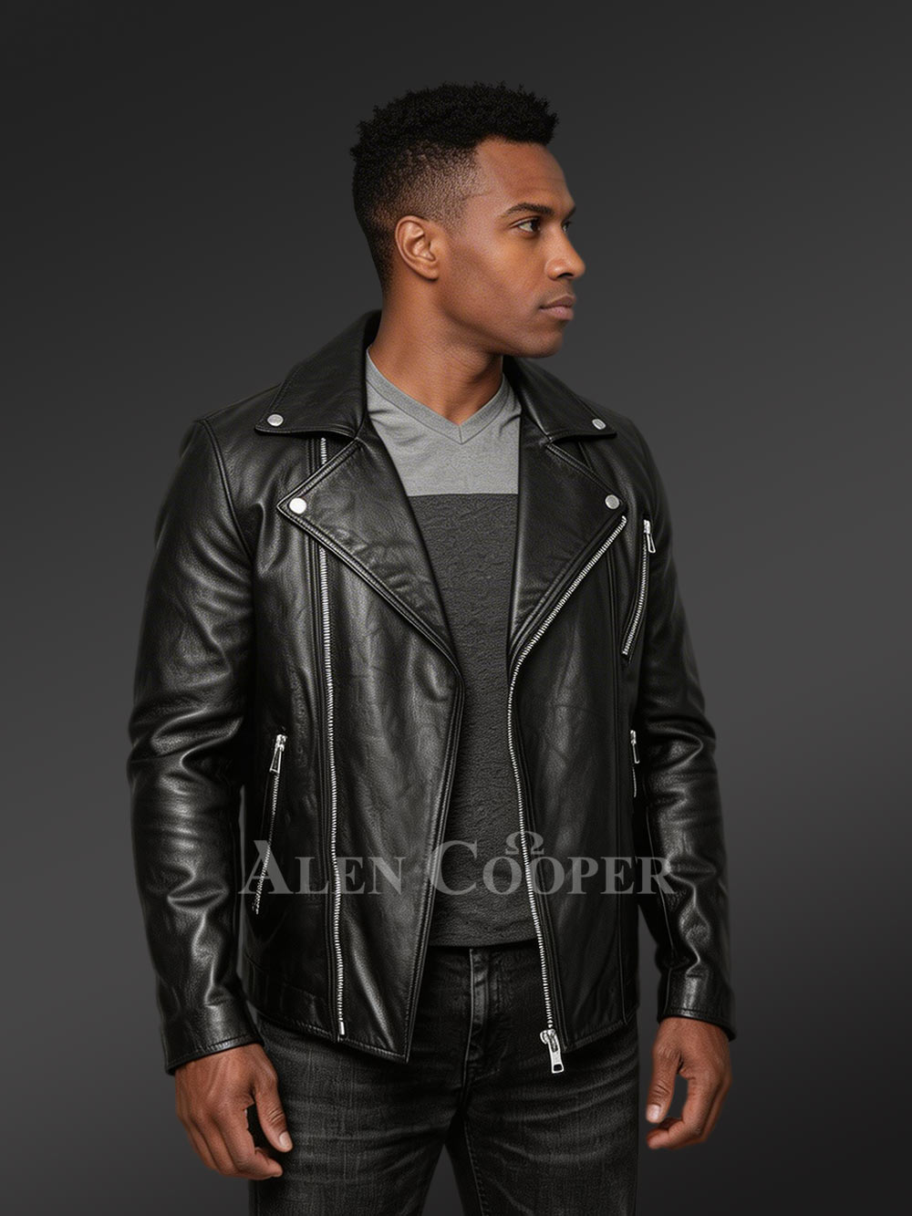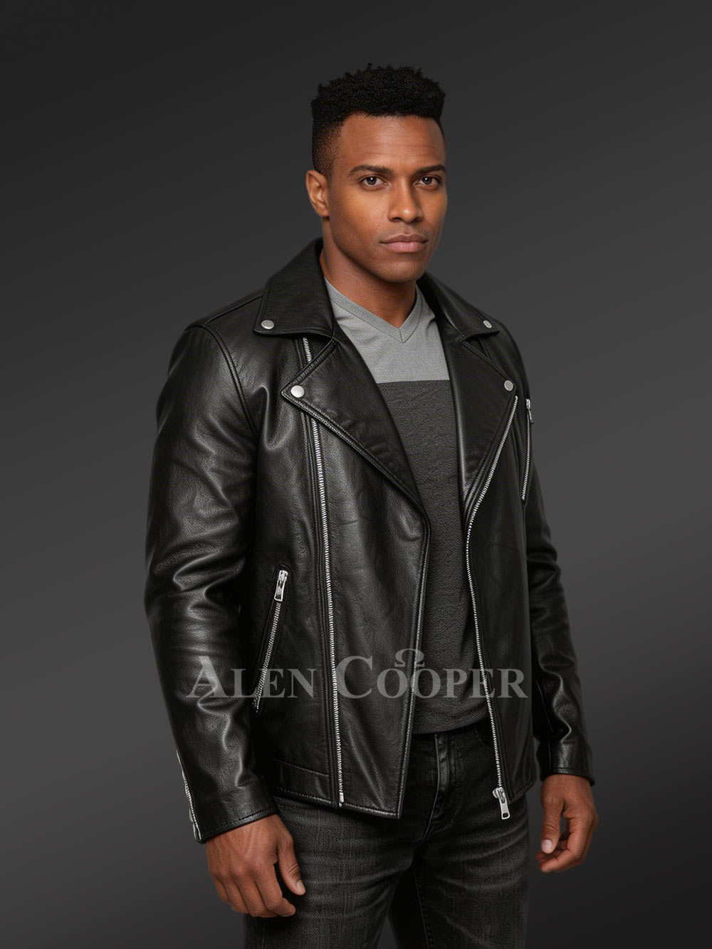 Alen Cooper’s premium winter collections epitome the most luxurious outerwear for men. Opulence is a strict priority without compromising on other parameters. Likewise 100% top-notch quality is a promise, and as a result, excellence points toward utter comfort label. One such examples is the Biker Leather Jacket for Men by Alen Cooper which is seasoned to score the aforesaid.