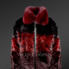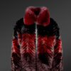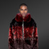- Luxuriant bomber jacket of mink fur looks spectacular in a vibrant color combination of black, red and wine shades