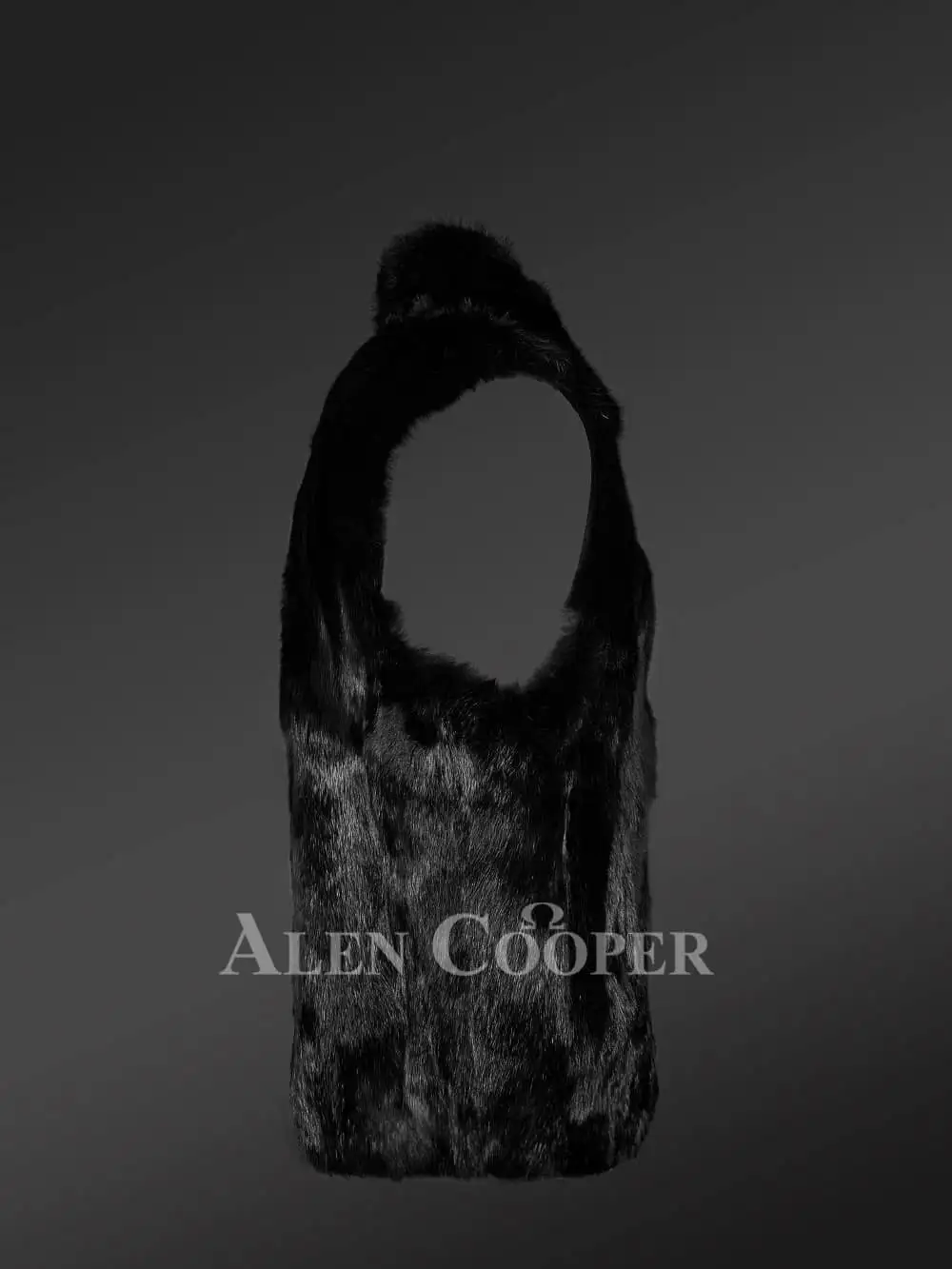 - Classy vest of authentic rabbit fur pelts in a rich shade of black