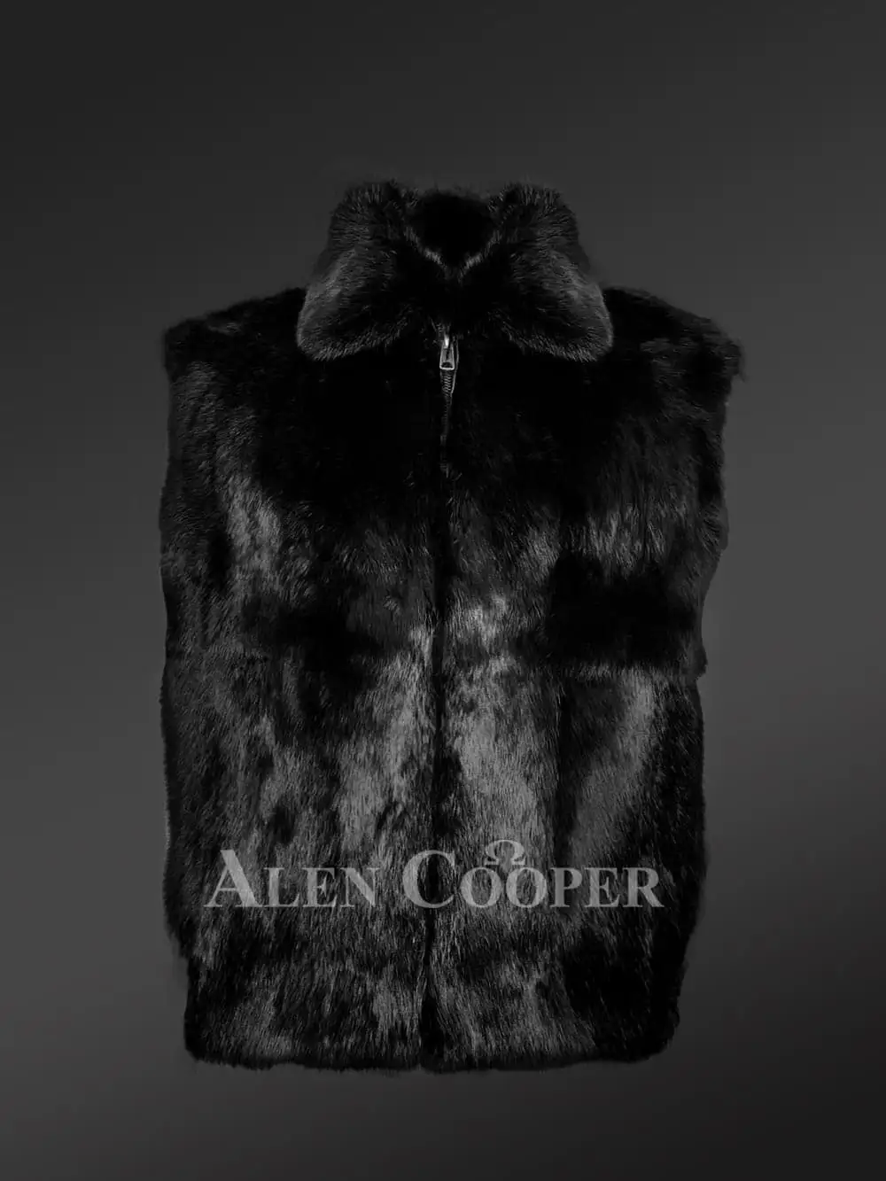 This sleeveless authentic rabbit fur vest is a perfect outfit for men in winter. Skilled designers paid attention to each feature while making this winterwear by hand. This outfit isn’t just glamorous. It is designed to last for years with maintenance and care. It certainly strikes a balance between stylish looks and practical features. On one hand, it glamorizes one’s appearance. On the other hand, it offers warmth and comfort to the wearer.