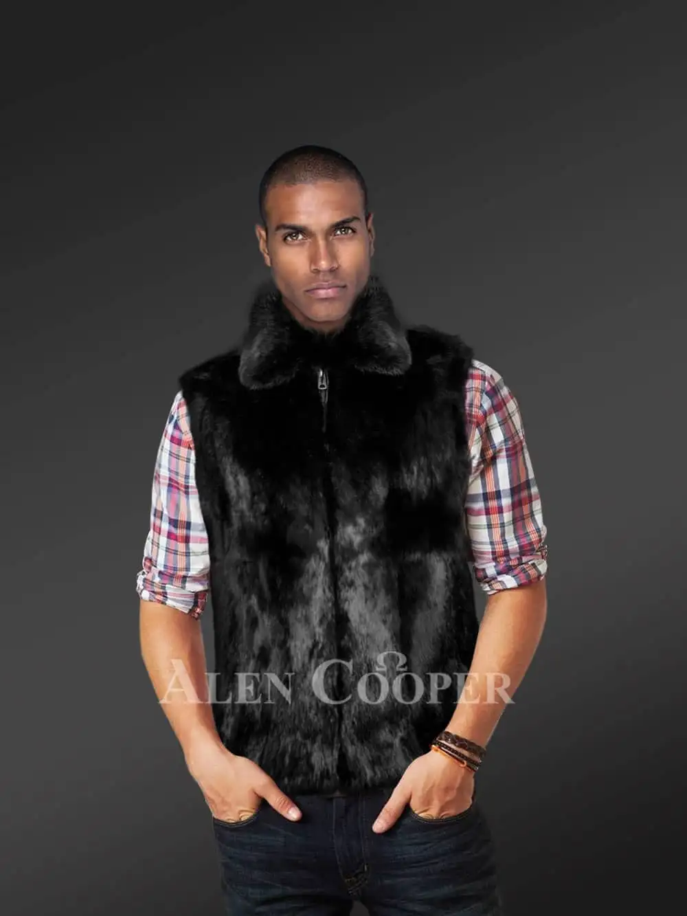 This stylish vest of rabbit fur isn’t just ideal for moderately cold temperatures. To emphasize, one may even wear it over a sweater for additional protection from the freezing wind. When the temperature is moderately low, one may wear it over formal, semi-formal, or casual shirts as well as full-sleeve T-shirts for men.
