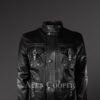 This is a deluxe mens black lambskin leather parka designed to offer maximum warmth and comfort in colder months. It has a buttoned band collar which envelops the neck in comforting warmth of leather. Modish front buttons indeed elevate the looks of this jacket. They are easy to use and durable. This jacket has multiple pockets fitted with flap cover and buckled leather straps. Therefore, this isn’t just a fashionable winter outfit. It also comes with many convenient features for the users. The satin lining with silky texture certainly complements the smoothness of lambskin leather.
