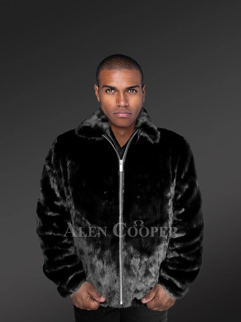 Mens Black Mink Bomber – Modish Outfit to Make a Bold Statement