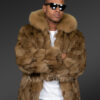 Wrapping oneself up in a natural fur coat during chilly winter days not only makes one feel restful but also carries a sophisticated look during any event or function. This elegant Mens Bomber In Fox Fur has an unparalleled premium furry texture, creating a classy appearance for the winter season. Alen Cooper sets an elevated benchmark with the adroit crafting of this fashionable plush attire. This bomber-style jacket has a wasp waist size that runs a little below the waistline.