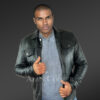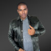 Men’s Button Down Italian Finish Leather Jacket in Black
