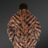 The front and back sides of this jacket as well as the sleeves are designed artistically using the fur pelts in square shape. The undulant surface that results from this designing style certainly makes this jacket look unique. This winter-outfit is also designed with a thick collar of chinchilla fur. It offers cozy warmth to the neck as well as shoulders. For a pleasant experience, this outfit is also designed with satin lining. Its velvety texture feels markedly comfortable and keeps one fresh for hours.