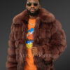 Mens Coffee Brown Fox Fur Bomber Jacket – Commands Attention with Chic Elegance