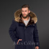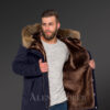 Men’s Fashion Trends Redefined with Finn Raccoon Fur Hybrid Navy Parka Convertibles with Rabbit Liner