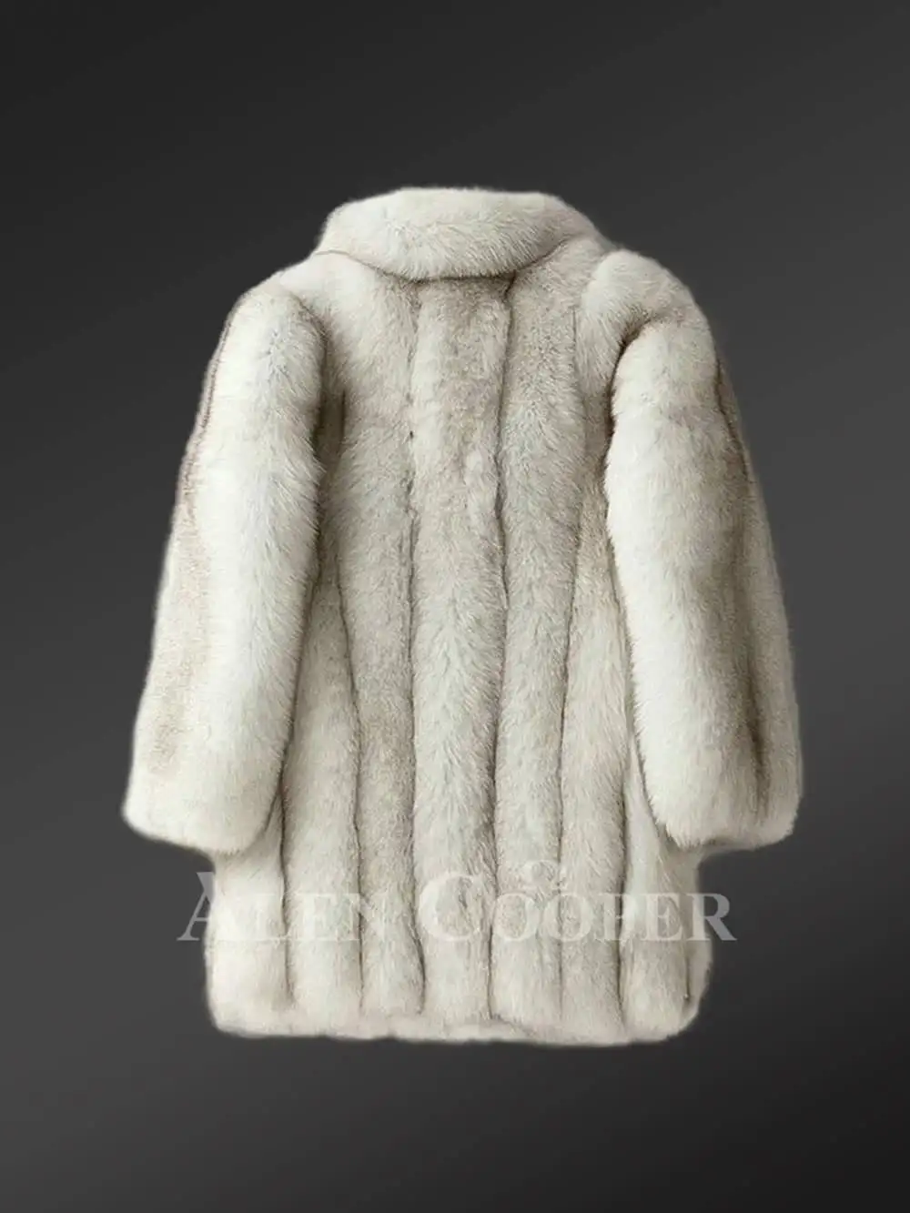 - Posh coat of Arctic fox fur with long sleeves looks regal in pristine white shade