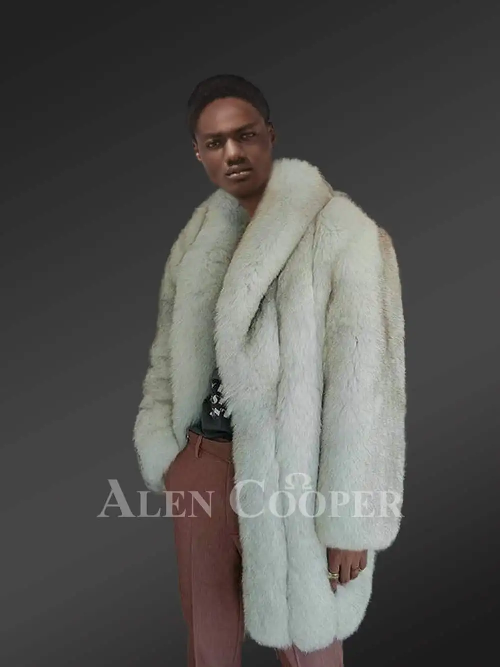 This coat is handcrafted to last for decades owing to the premium quality of materials used in designing. Its impeccable appearance is certainly going to captivate one generation after another. It can create a charming combination with a large variety of shades because of the white fur. Also, it looks equally sophisticated when paired with formal, casual or fashionable trousers for men.