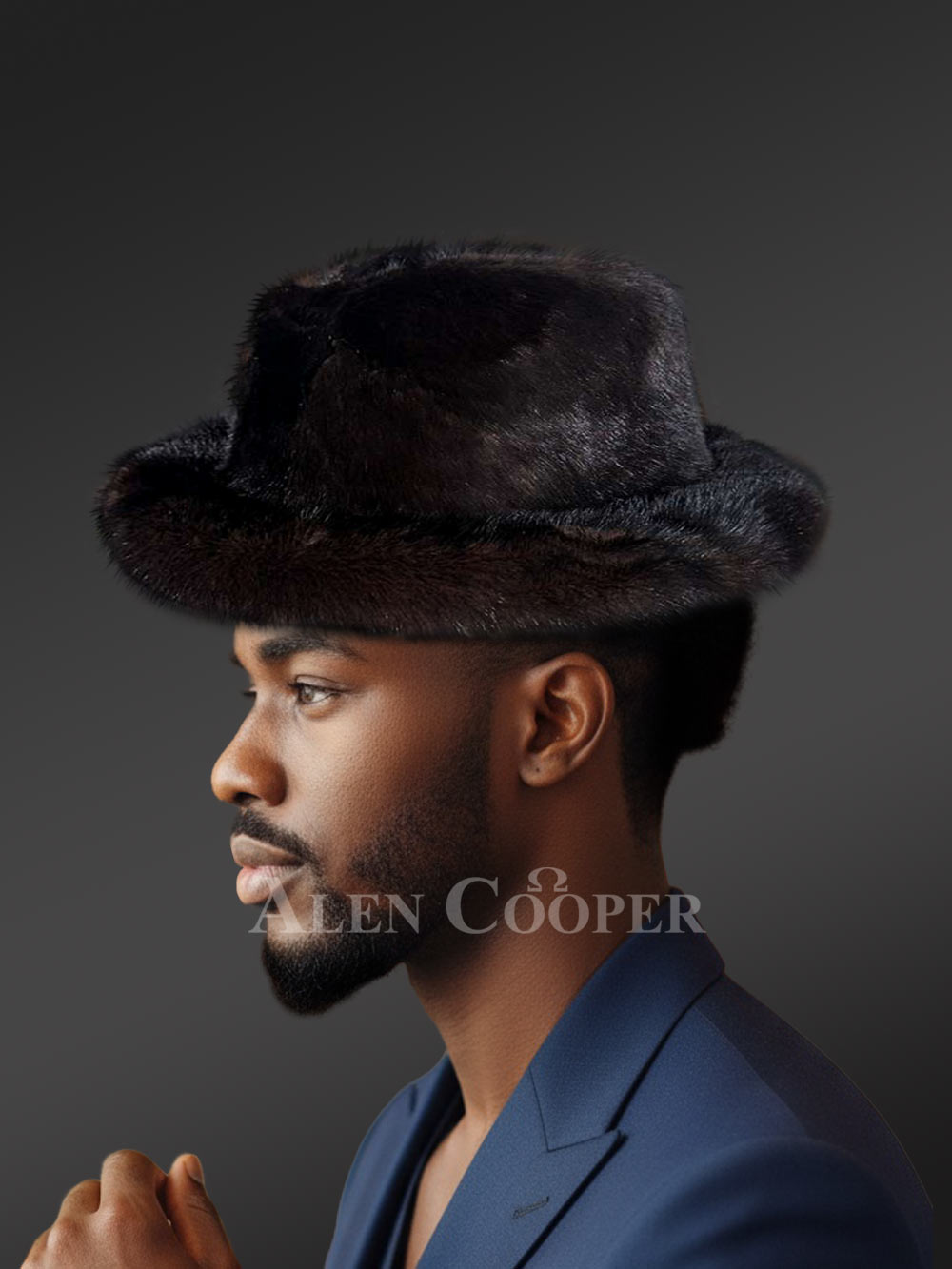 Men’s Fullskin Mink Fedora Hat in Mahoghany Brown