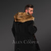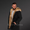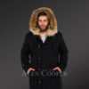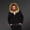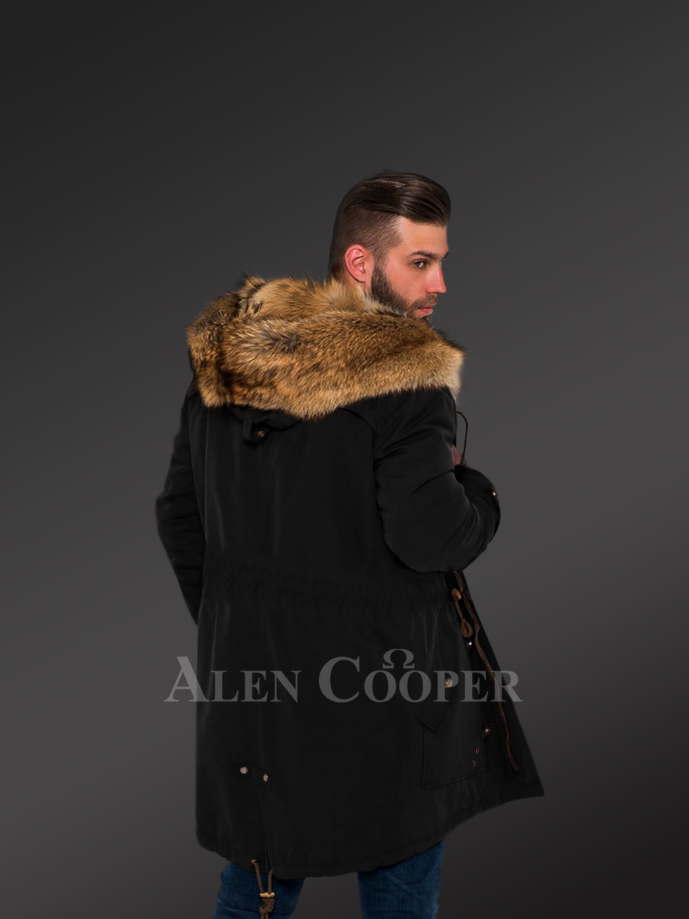 Men’s Golden Island Fox Fur Hybrid Black Parka Convertibles for More Stylish and Elegant You with Rabbit Liner
