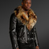 Men’s Leather Jacket with Chic Finn Raccoon Fur Collar