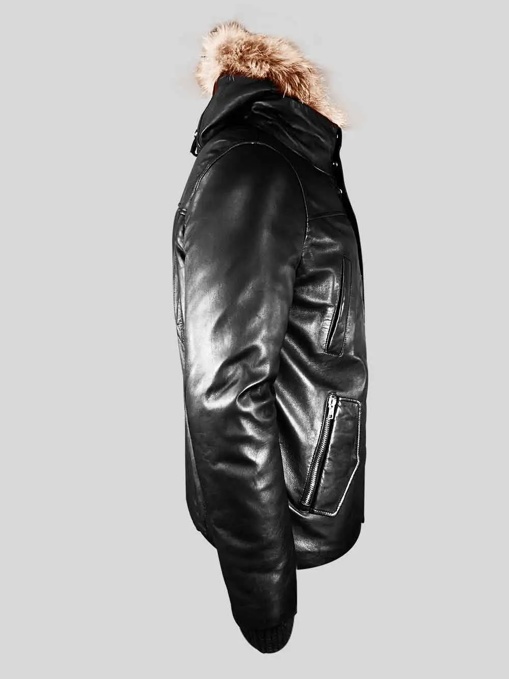 Mens Leather Parka with Raccoon Fur in Hood – Perfect Union of Fashion & Comfort