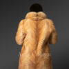 This sophisticated mens mink stroller in whiskey shade can readily elevate the appearance of any man. It’s designed using the finest quality fur from mink tails. Therefore, it enwraps one in cozy warmth of mink fur. It’s designed to fit comfortably with baggy sleeves. The frontline of fox fur offers additional comfort to the wearer along with the premium quality satin fabric which lines the coat. It also has spacious slit-style side pockets to carry one’s essentials and to keep the palms warm.
