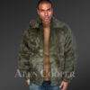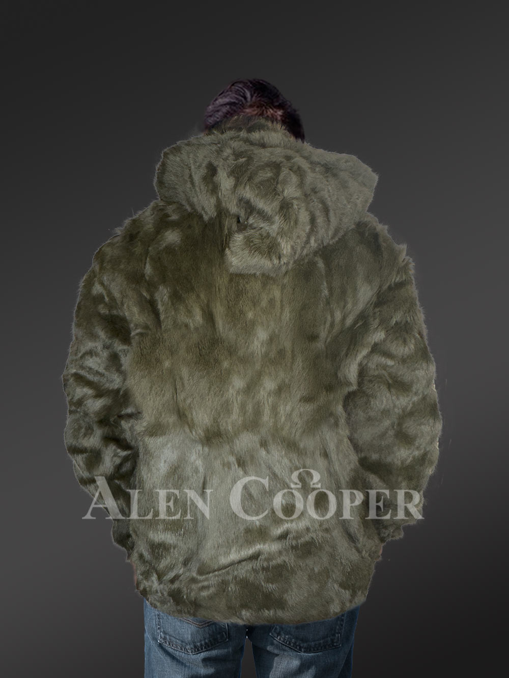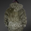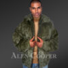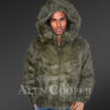 Mens Rabbit Fur Bomber with Hood in Graceful Olive Color