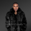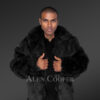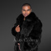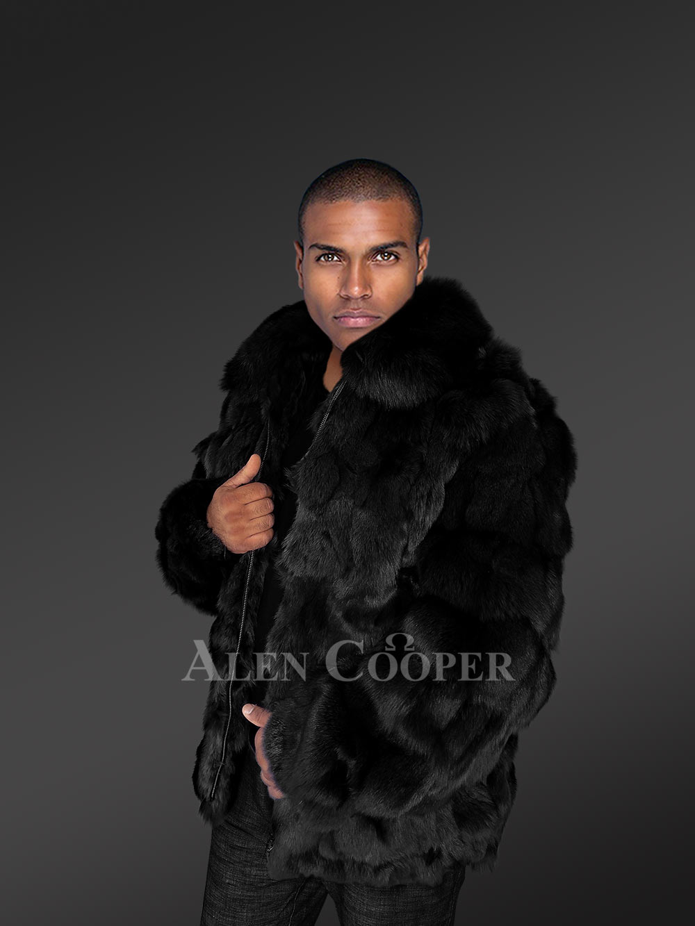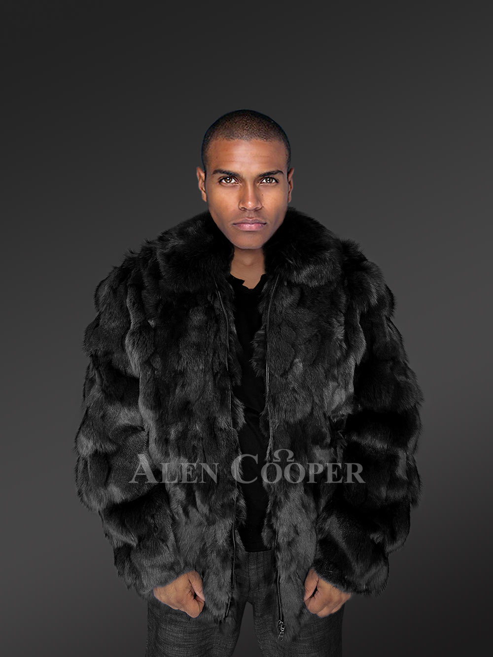 Combating frigid weather in a comforting style effortlessly boosts one’s persona with thermal confidence. Real furred outerwear proves beneficial in furnishing the much-needed insulating snugness to the wearer. Keeping all the functionalities in mind, Alen Cooper has artistically designed this mens section fox fur bomber as a winter essential for the men’s wardrobe. This plush winter wear crafted from real blue fox fur offers absolute thermal relief. It looks spectacular in a jade black shade therein radiating a party vibe.