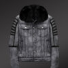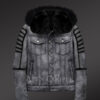 Men’s Shearling Coat in Grey With Black fox fur and Hood