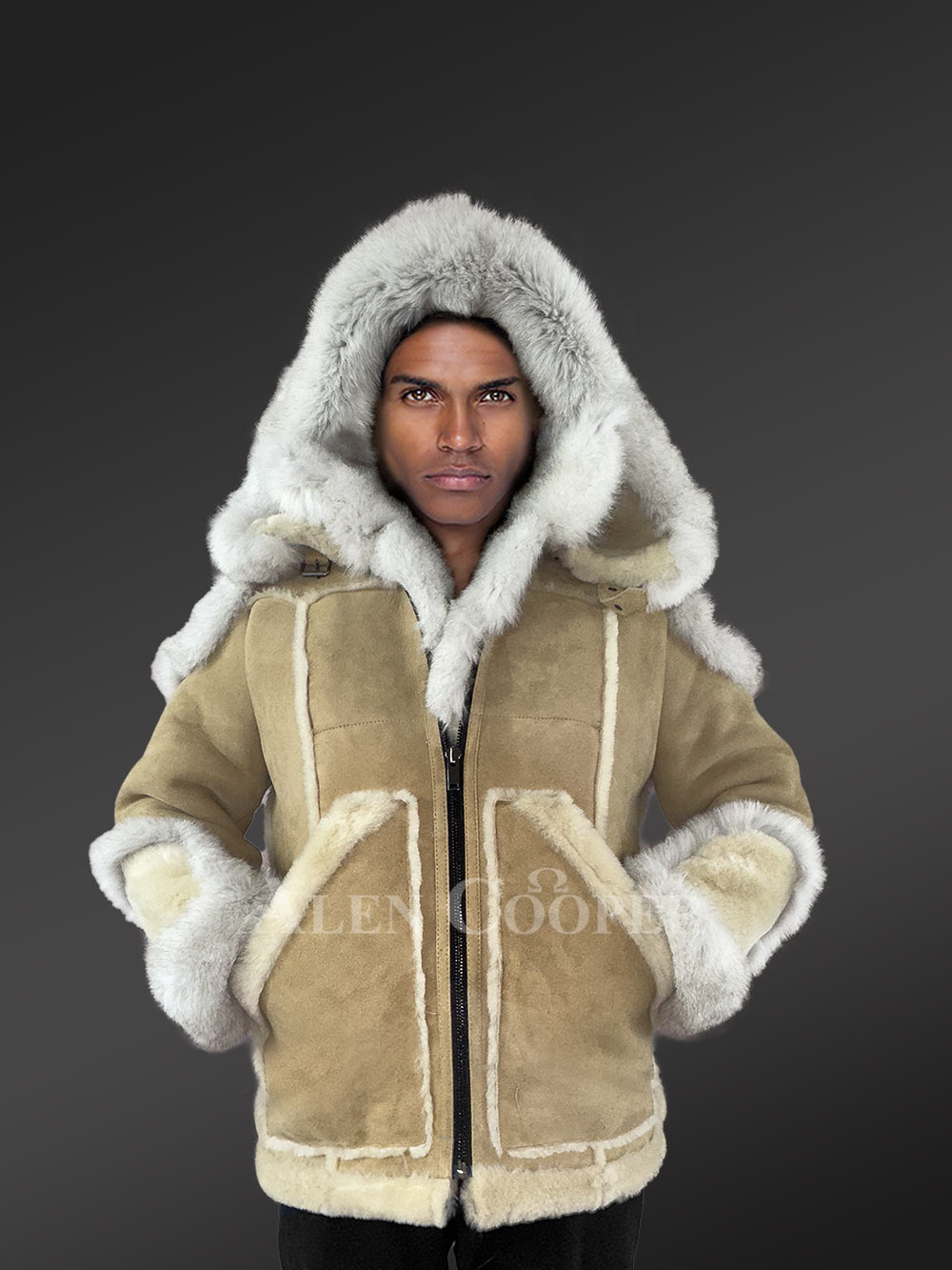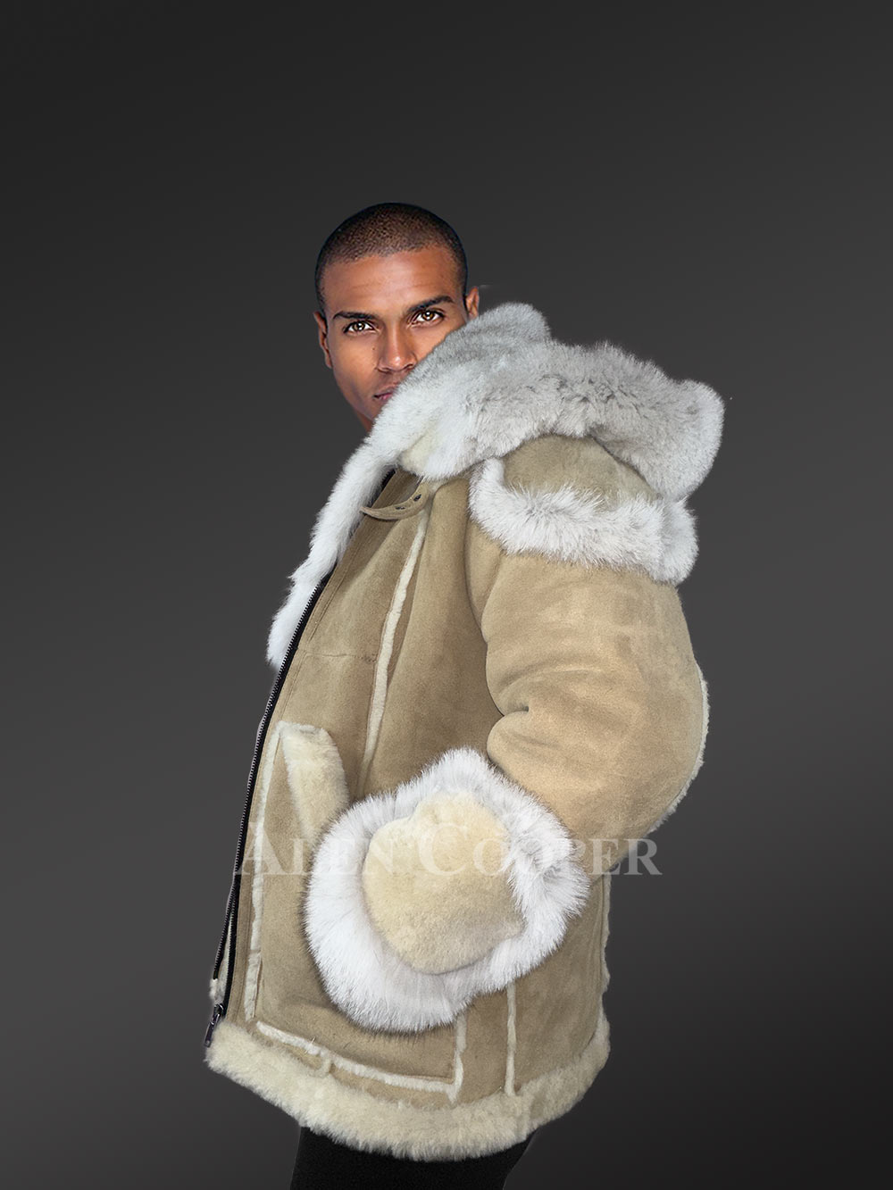 Exquisite Features of Shearling Mens Jacket with Fox Fur Accentuation