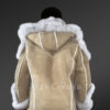 The enormous shearling hood efficiently covers the whole head. Moreover, fox fur trims mark the edges of the hood adorning the aesthetics and guarding the face from coldness. The prolonged baggy sleeves cover the arms and the palms. Trimmed fox fur also borderline the cuffs furnishing added thermal relief to the arms. The lower section of the sleeves also features trims of fox fur. Woolen layering on the hemline further provides warmth to the wearer. Another noteworthy feature is the frontal patch pockets that help in carrying the essentials and also keep the palms warm. A user-friendly metal zipper with a chrome finish generates complete thermal closure to the body.