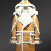 Mens Shearling Long Coat with Detachable Hood and Back Slit