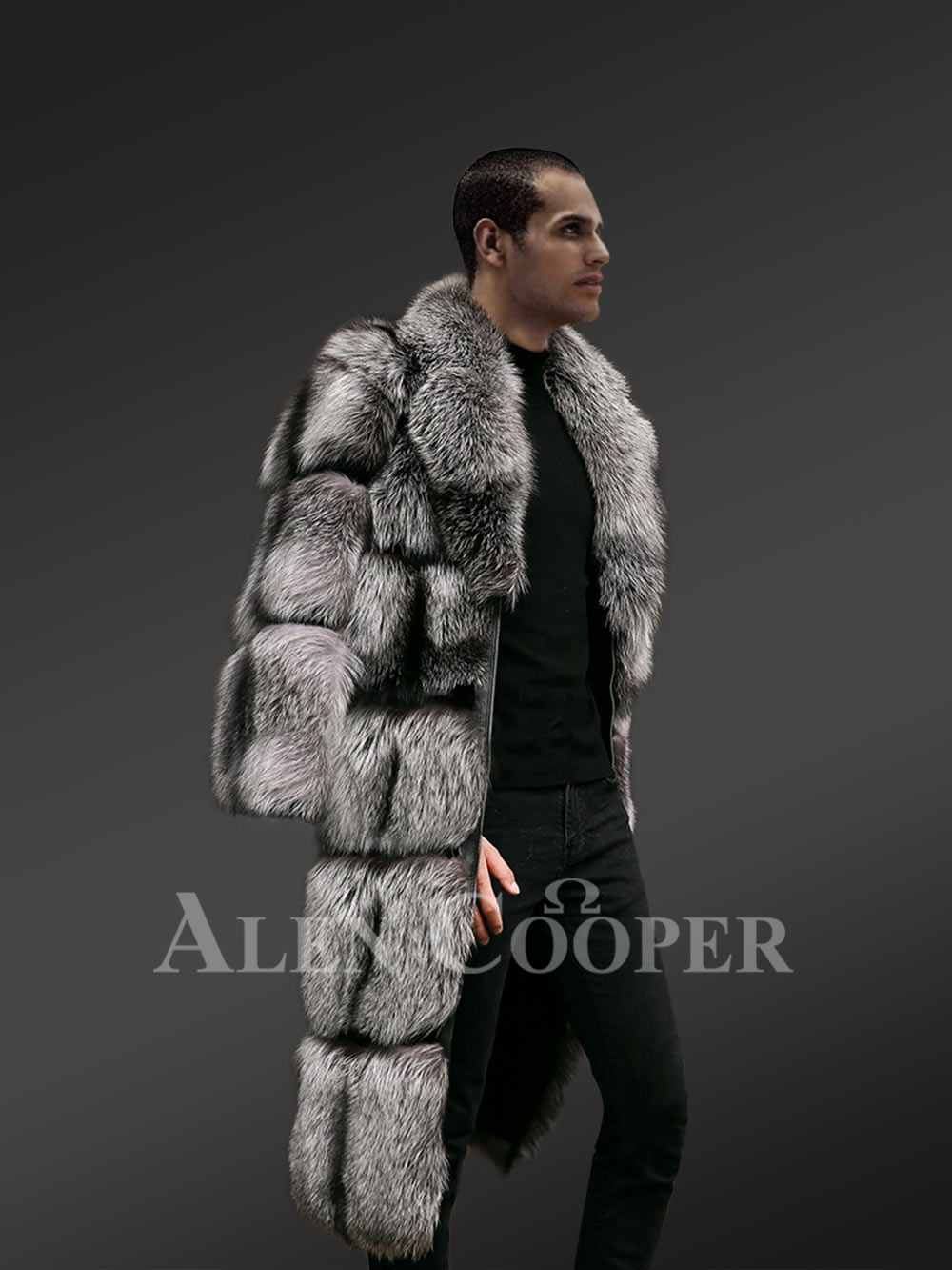Mens Long Coat of Silver Fox with Magnificent Features