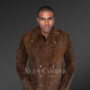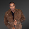 There’s no doubt that this suede jacket of lambskin leather will be an impressive addition to one’s wardrobe. It looks unique, feels incredibly soft and keeps one warm with a pleasant feel of satin and leather. The brown color of this outfit matches flawlessly with all shades of black, blue, brown and grey.