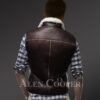 Made with care, caution and precision, the shearling jacket has a flawless finish. The distressed brown Shearling Vest has leather lining all over it. It is specifically seen in the zipper lining, shoulder area, bottom edge and the backside of the vest too. The vest can be worn to different social gatherings and events.