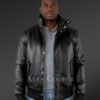Mens Turtle Neck Leather Bomber Jacket with a Jet Black Luxe Appeal