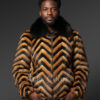 Mink Bomber Coat for Men in Dual Scheme Pattern