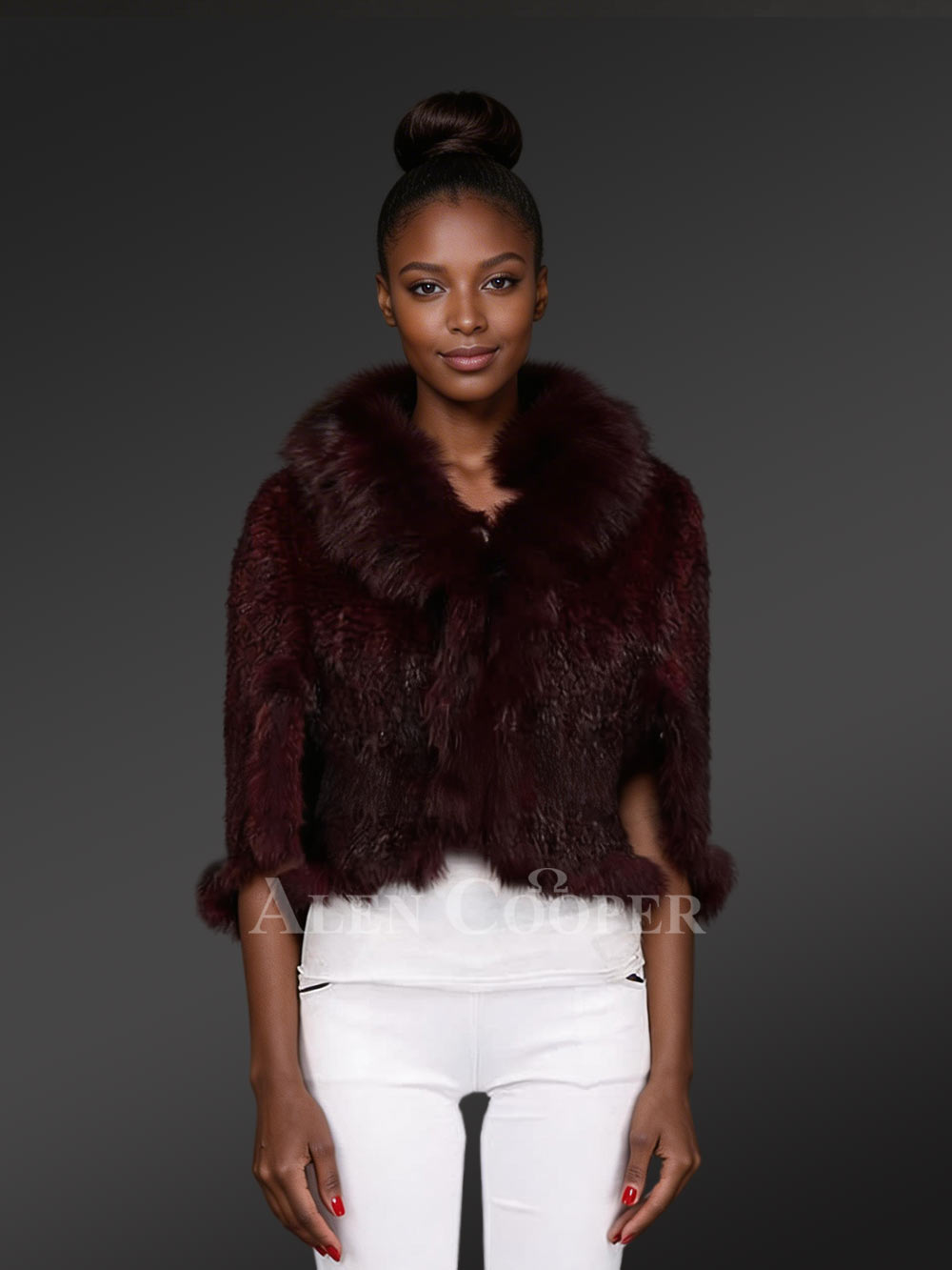 - Genuine mink fur in a charming burgundy shade.