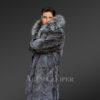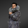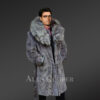 Mink Fur Long Coat with Silver Fox Collar and Back Vent