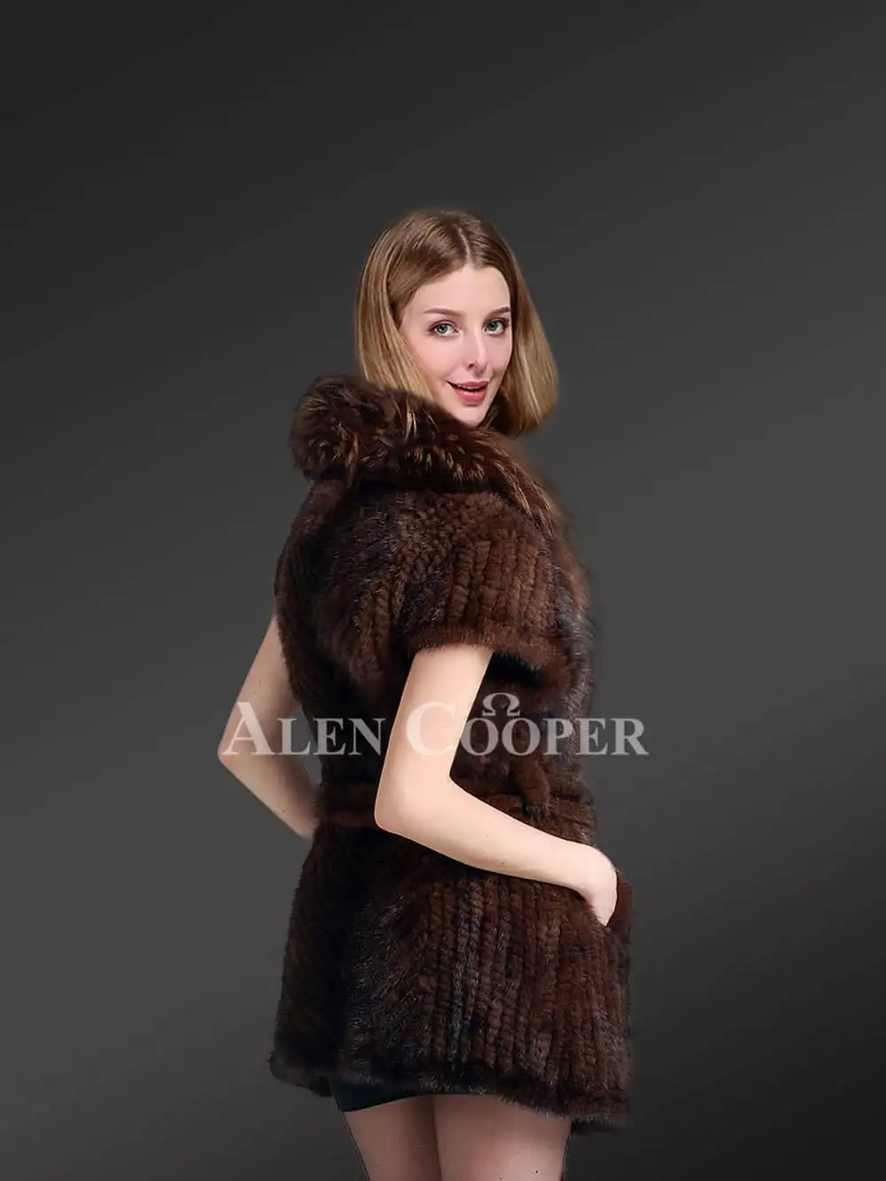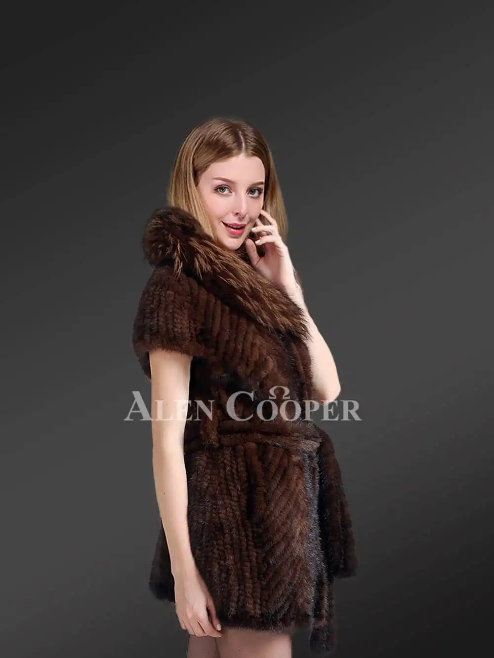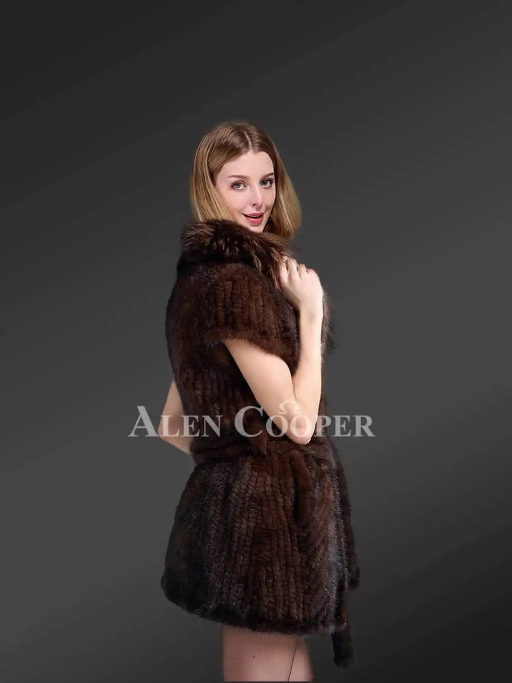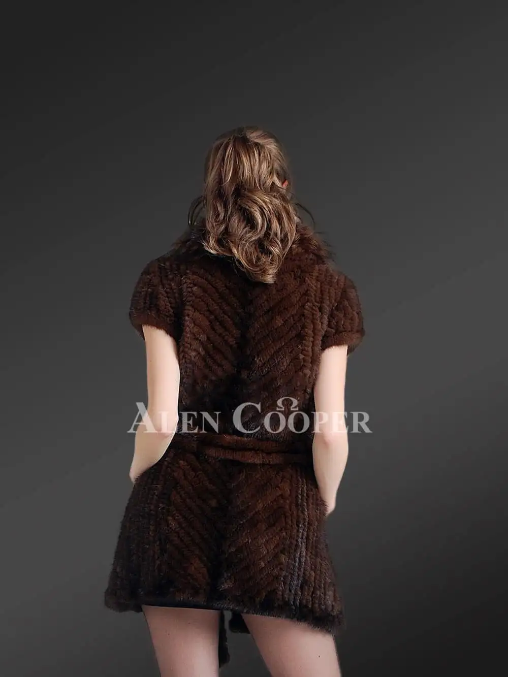 The coat knitted from Mink Tail Fur gives a trendy and unique look. The pattern resembles that of a zigzag format and adds amazing effect. This attire is perfect to add style and elegance to your wardrobe collection. The unique cap sleeve pattern enhances the style statement of the coat.
