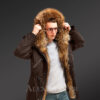 More Stylish and Elegant With Finn Raccoon Fur Hybrid Coffee Parka Convertibles for Men with Rabbit Liner