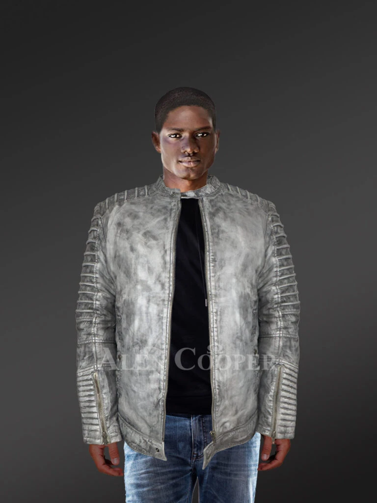 Motorcycle Leather Jacket for Men in A Classic Fusion Of Grey Shades