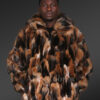 - Premium fox fur bomber jacket for men with hood.
