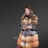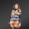 In this brightly colored vest, wide bands of fox fur as well as raccoon fur have been beautifully arranged to create an enigmatic look. To emphasize, the middle and lower tiers are designed using the finest pelts from Silver fox and Red fox. However, premium quality raccoon fur forms the topmost tier of this vest. Without a doubt, the aesthetic appeal of this vest results from this unique amalgamation.