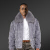 - Grey bomber jacket crafted of authentic sheared mink head furÂ