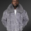 - Grey bomber jacket crafted of authentic sheared mink head furÂ
