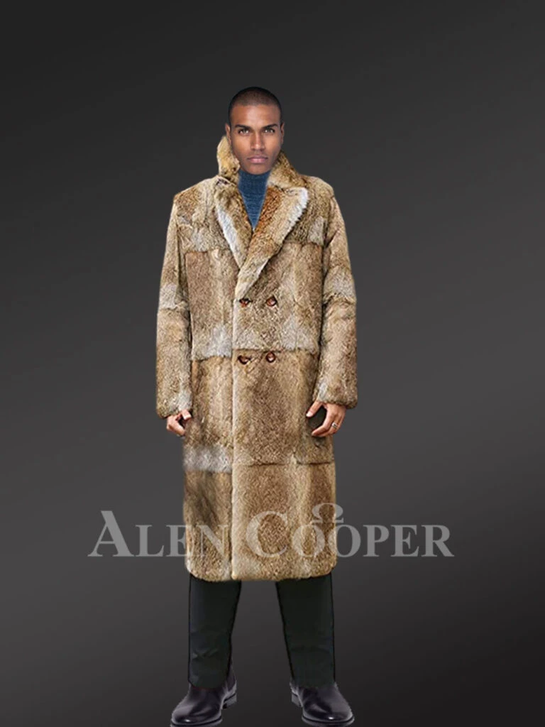 Men’s double breasted Natural Rabbit Fur Long Coat