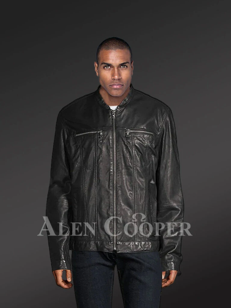 Choose this fashionable Original Leather Moto Jacket for Men from Alen Cooper this winter. You will stay warm in style during the chilly winter festivities, by donning this jacket with a smooth finish. It is completely handcrafted with extraordinary skill and grace.