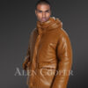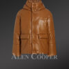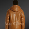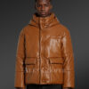 Men’s Puffer Leather Bomber Jacket with Collared Neck and Detachable Hood
